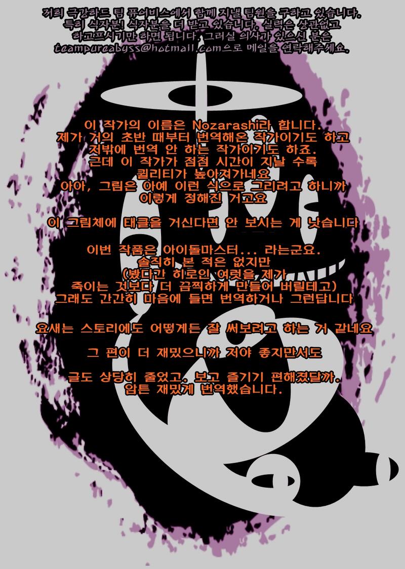 [Nozarashi (Nozarashi Satoru)] Idol datte Koushuu no Menzen de Icha Love shitai!! (THE iDOLM@STER) [Korean] [Team Pure Abyss] [Digital]