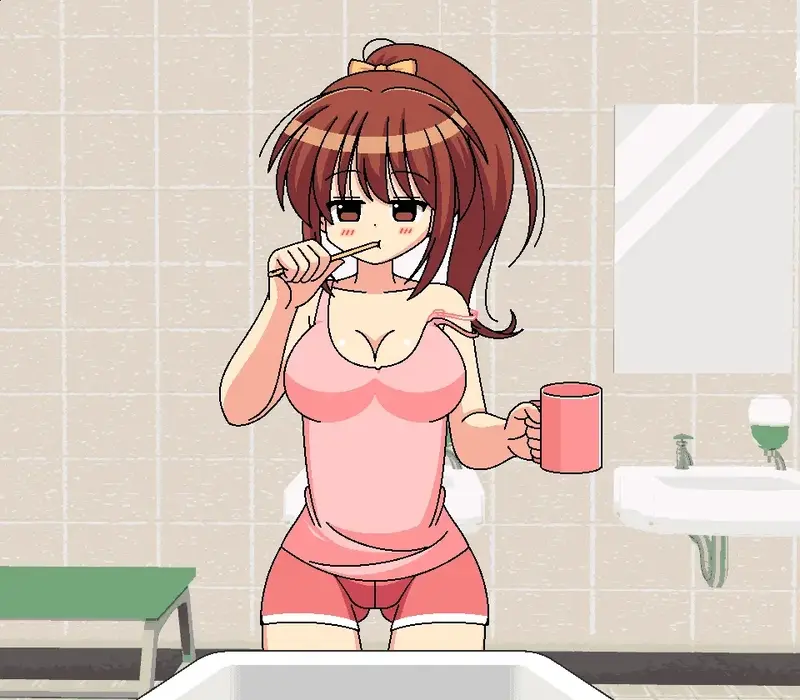 [ぷにっとドット] 茶髪ポニテ歯磨き