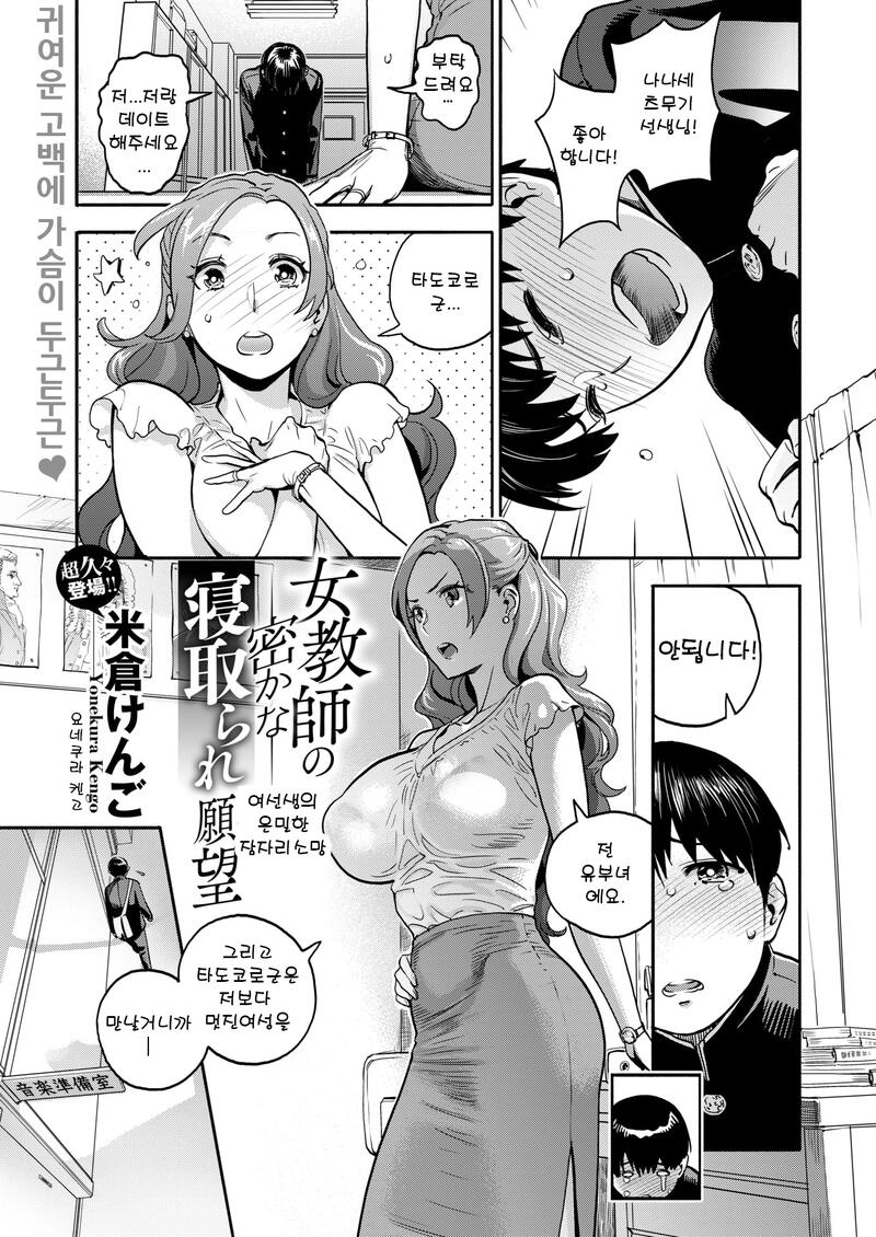 [Yonekura Kengo] Onna Kyoushi no Hisoka na Netorare Ganbou | 여선생의 은밀한 잠자리 소망 (COMIC X-EROS #77) [Korean] [Digital]