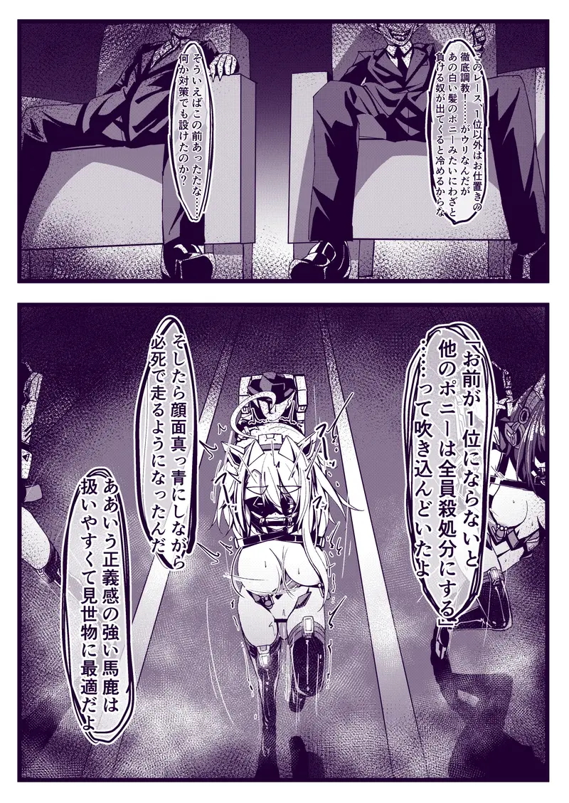 [hikigaeru] 近未来ポニーガール・おまけの1ページ「レース」 & 拘束具設定資料